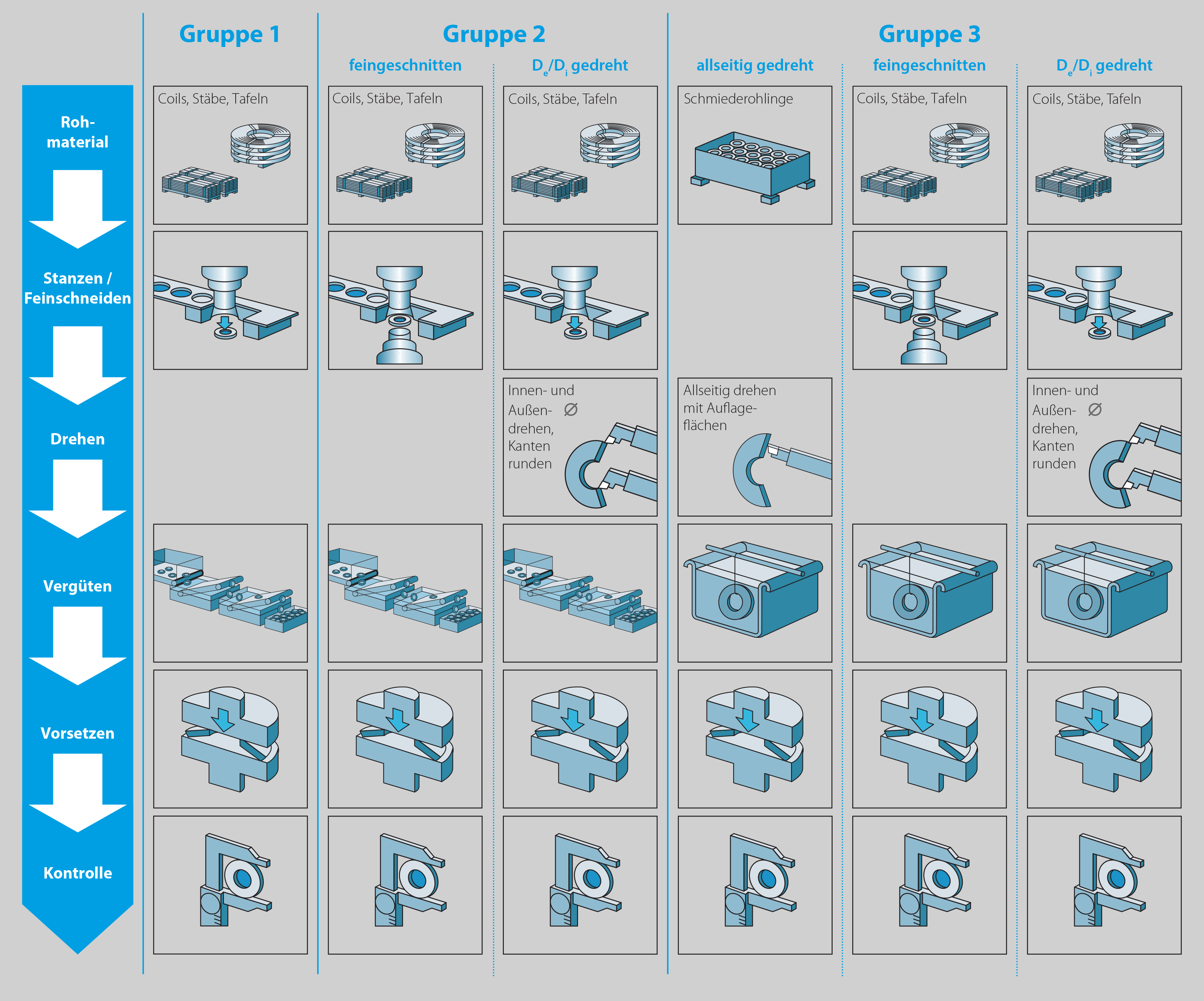 Nach DIN EN 16983 (Ehemals DIN 2093) werden drei Fertigungsgruppen unterschieden:
