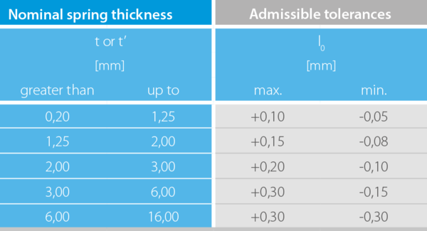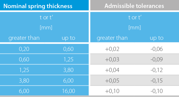 Allowances for spring thickness with springs according to DIN EN 16983 (previously DIN 2093).