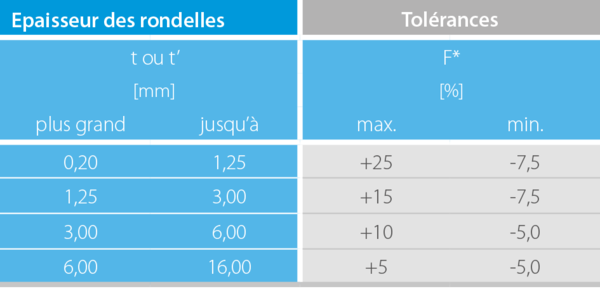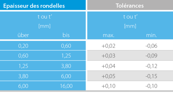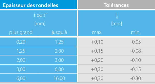 Groupe 2: épaisseur de rondelle t = 1,25 à 6 mm